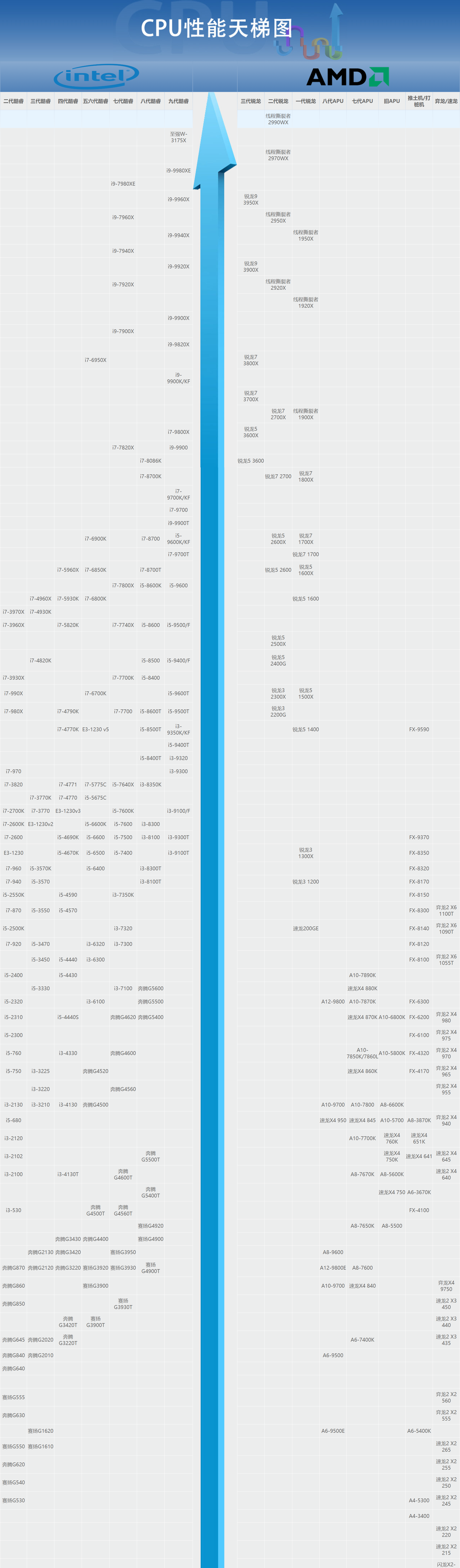 最后附上一张cpu天梯图完整版,方便大家了解一些老架构处理器的性能排名关系。